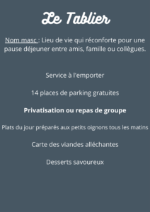 La privatisation de notre restaurant pour recevoir vos amis, votre famille ou pour un repas d’entreprise, 021.701.24.55 ou restaurantletablier21@gmail.com